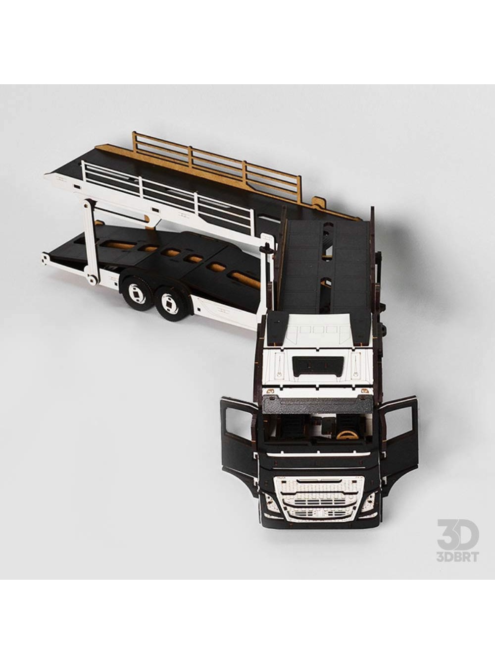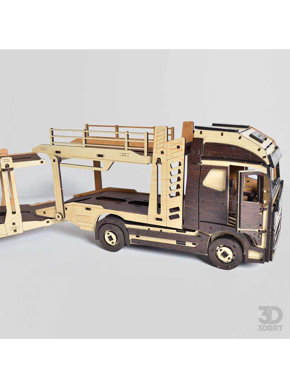 3д-пазл дерв'яний тягач з причепом автовоз на відео БРТ.