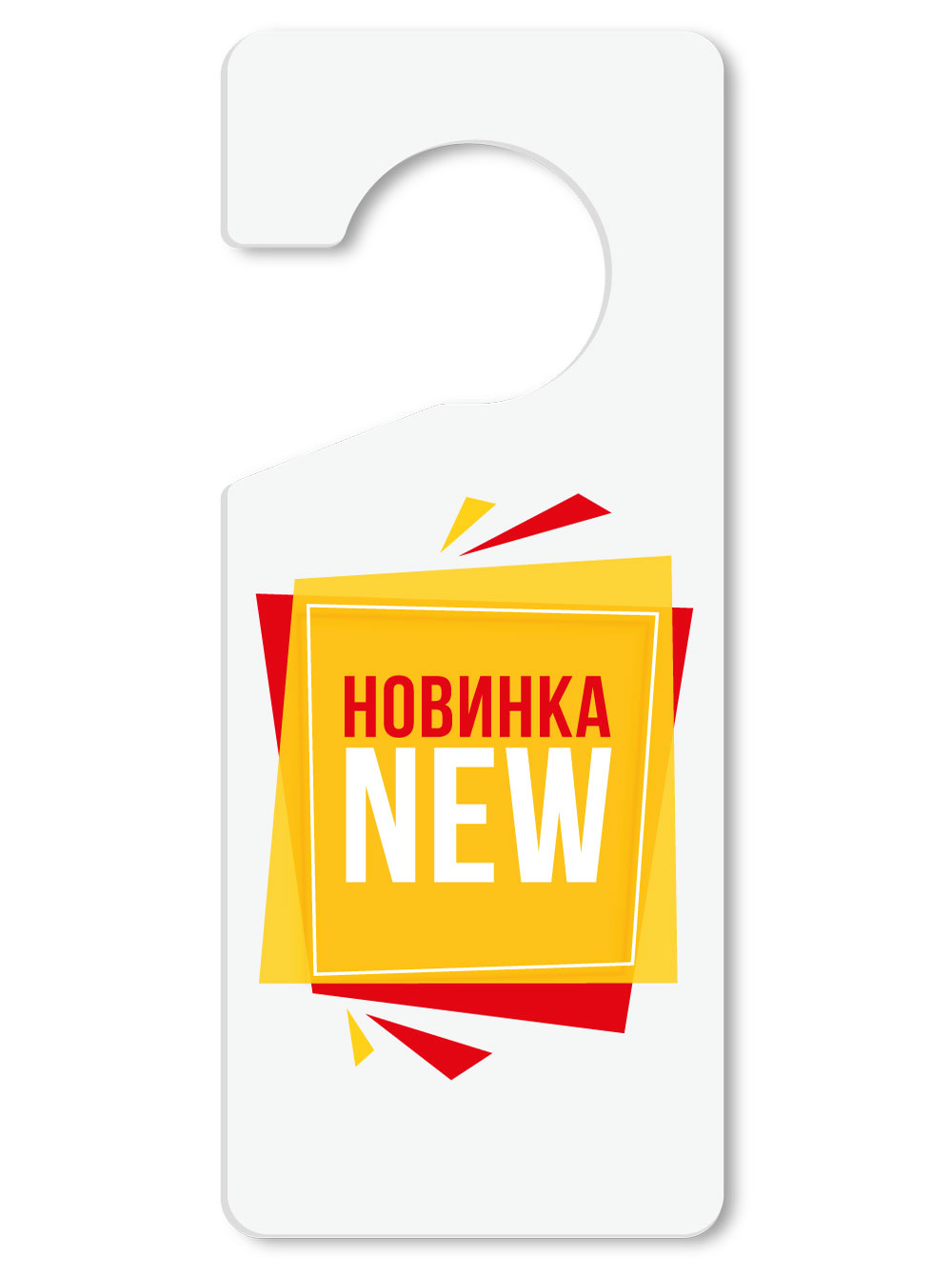 Пластикова табличка з написом "Новинка" для крамниць, супермаркетів, кав'ярень, бутиків тощо... Основа білого кольору з яскравим насиченим червоно-помаранчевим принтом "Новинка, NEW" обов'язково приверне увагу покупців і проінформує про оновлення асортименту. Спеціальна форма не потребує додаткових кріплень: гачок легко зачепити за товар, вішак, підставку та будь-який виступ. Табличка з пластику довговічна у використанні, стійка до вологи. Легко купити на сайті виробника "Бюро рекламних технологій".