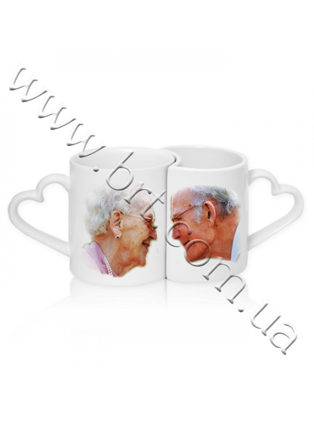 Парні чашки серце для закоханих, подвійні кружки з принтом: написом, світлинами на замовлення в Україні в Бюро рекламних технологій.