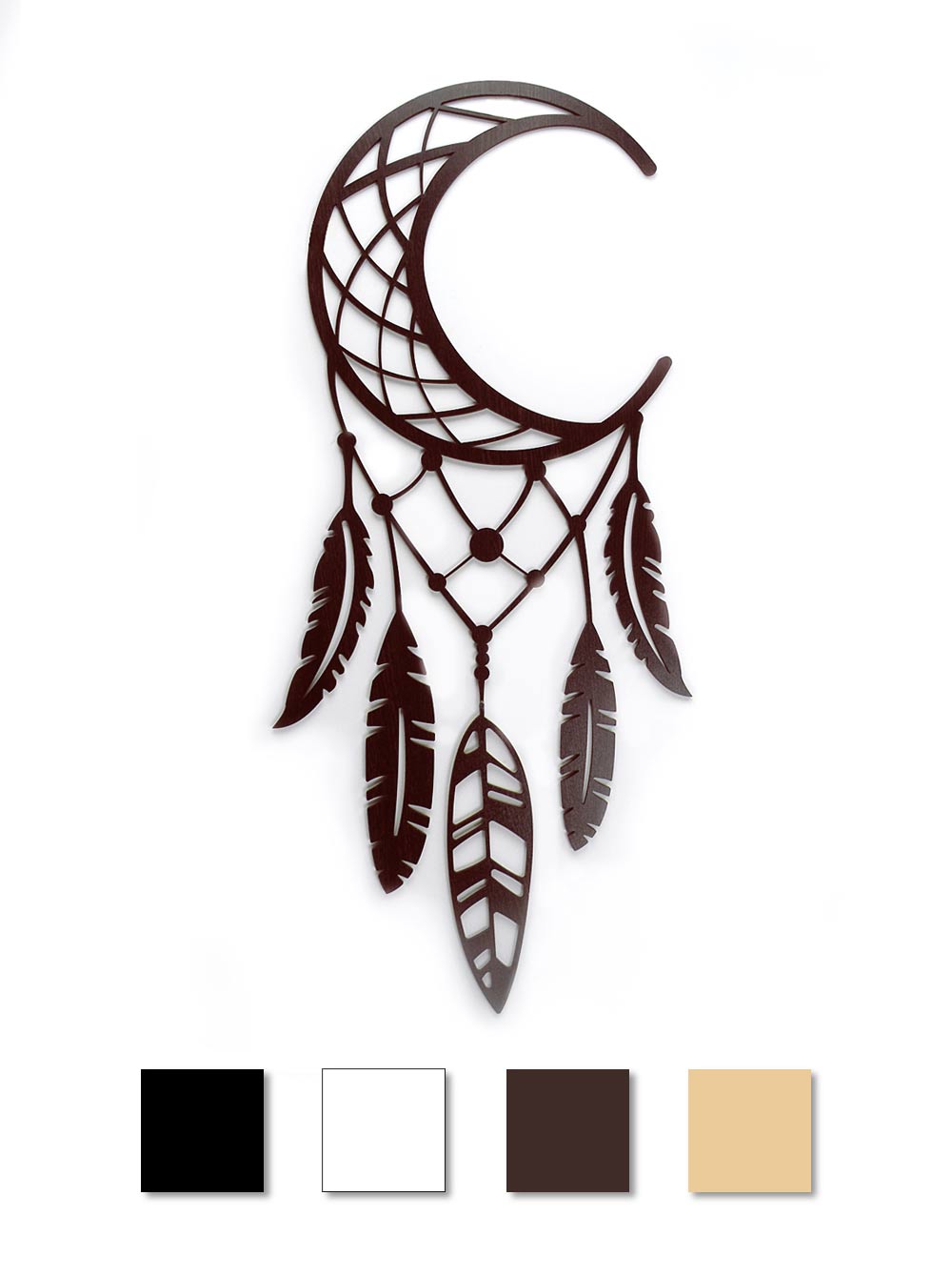 Настінний декор із дерева "Ловець снів" з молодим місяцем купити в українського виробника. Виконаний в етно-стилі в 4-х кольорах (чорний, коричневий, світле дерево, білий). Ловець снів "Етно" на відео Бюро рекламних технологій.