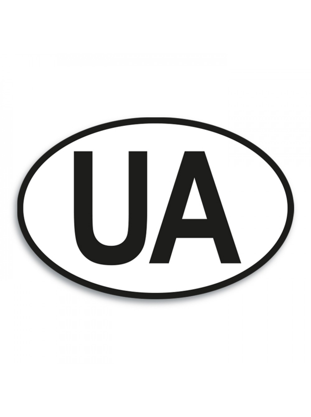 Готова наліпка розроблена відповідно до норм правил дорожнього руху — еліпс білого кольору з чорною каймою, всередині літери UA. Розпізнавальний автомобільний знак України розміщується ззаду на транспортних засобах, які перебувають у міжнародному русі.
