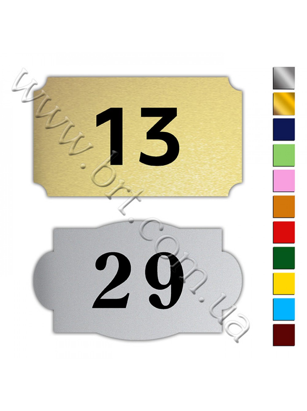 Метал для дверних номерків: алюміній золотистий, сріблястий, кольоровий.