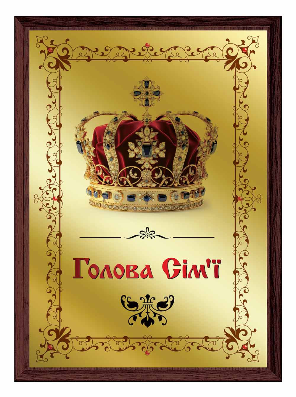 Золотистый металл с ярким изображением и красивым обрамлением, подчеркивающим высокий статус и достойное положение главы семьи.