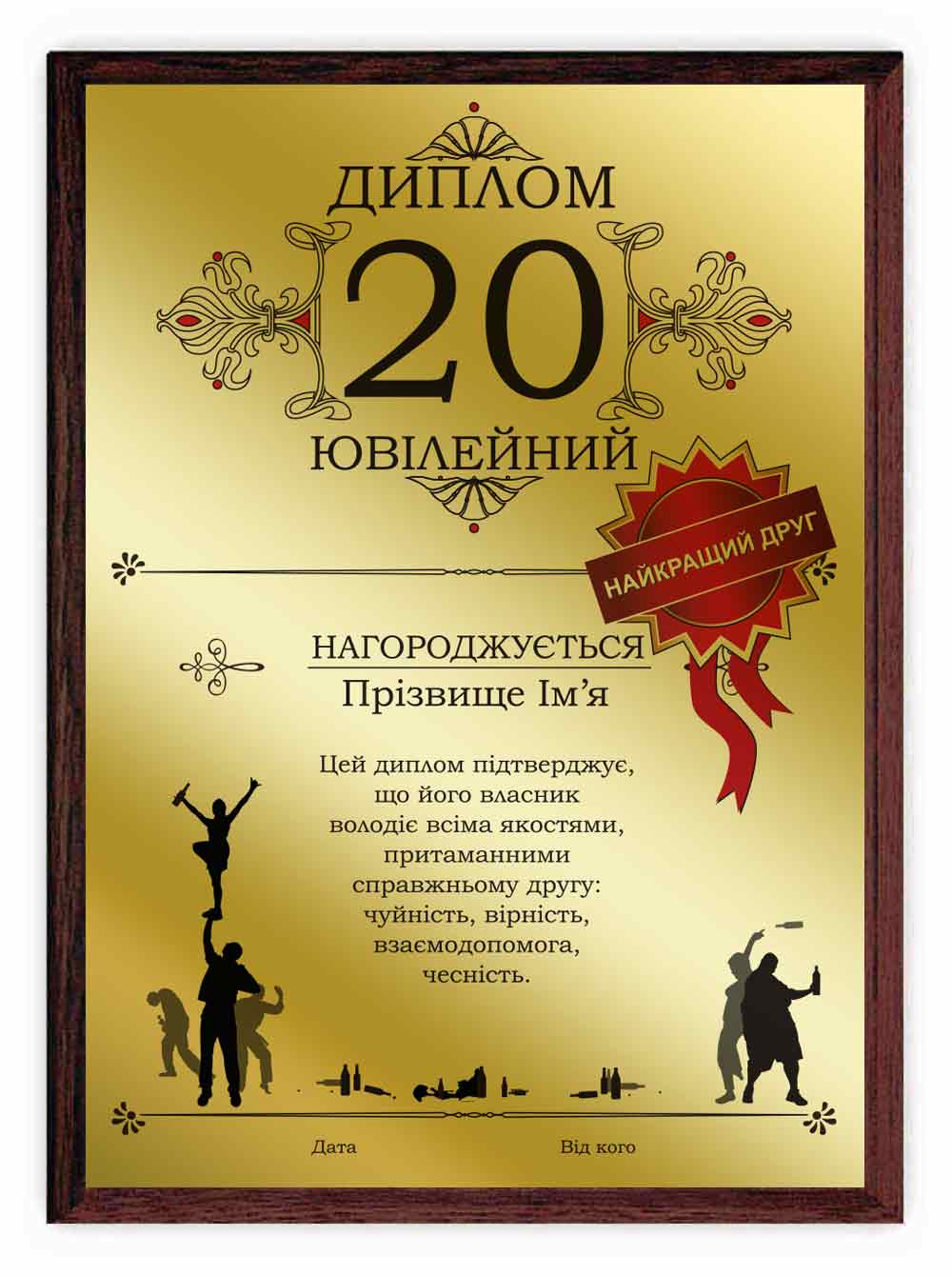 Диплом лучшего друга, верного друга, закадычного друга. Диплом настоящей дружбы на металле - достойный подарок! Дизайн этого поздравительного диплома подойдет и для шуточного, и для серьёзного поздравления.