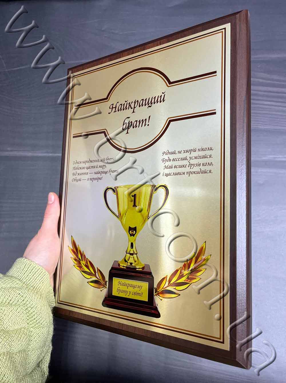Если вы хотите заказать грамоту брату со своим текстом (стих, поздравление в прозе) или фотографией вашего брата, можем нанести на металл. Цена диплома с вашим дизайном выше.