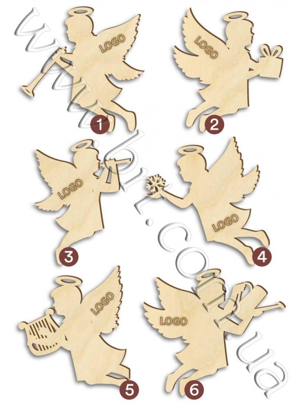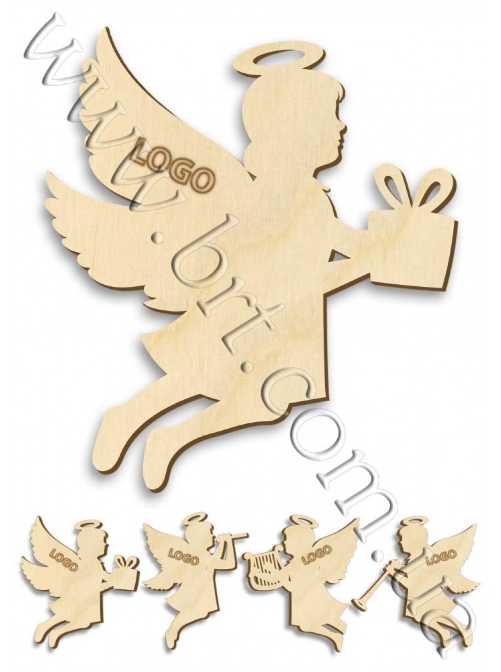Фигурки ангелов всегда олицетворяли мир, надежду и любовь. В старину их обязательно вешали на рождественскую елку, надеясь, что именно эти чувства будут царить в доме весь следующий год. Старые традиции возвращаются. Деревянная игрушка Ангел на сверкающем огнями новогоднем деревце станет настоящим оберегом. Купить в Украине ангелочков с логотипом, своим именем или как заготовку под декупаж у производителя новогодних игрушек Бюро рекламных технологий. Деревянные ангелы с арфой, дудочкой, снежинками - самый популярный сувенир на Рождество и Новый год.