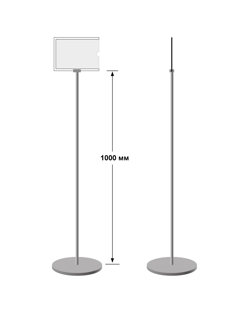 - Конструкция состоит из устойчивой металлической ножкой на круглом основании и таблички с прозрачным карманом.
