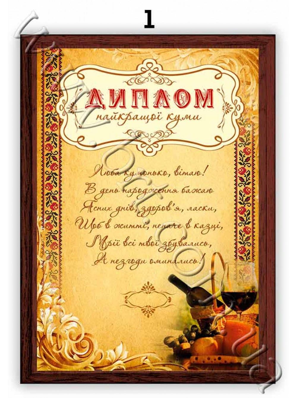Диплом лучшей куме, свидетельство почетной кумы купить в Украине у компании-производителя Бюро рекламных технологий.
