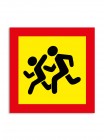 - Табличка "Дети" это желтый квадрат с красной каймой и схематическим черным изображением детей в центре (знак 1.33).