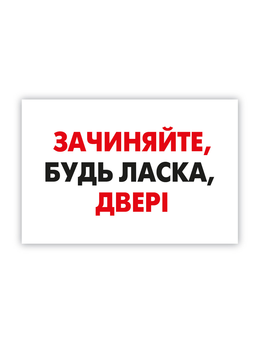 Закрывайте дверь - табличка на входную дверь офисов, магазинов от производителя. Яркая красно-черная надпись, читабельный шрифт. 2 (два) размера. Купить в Украине без предоплаты. Табличка «Закрывайте, пожалуйста, дверь» на видео Бюро рекламных технологий.