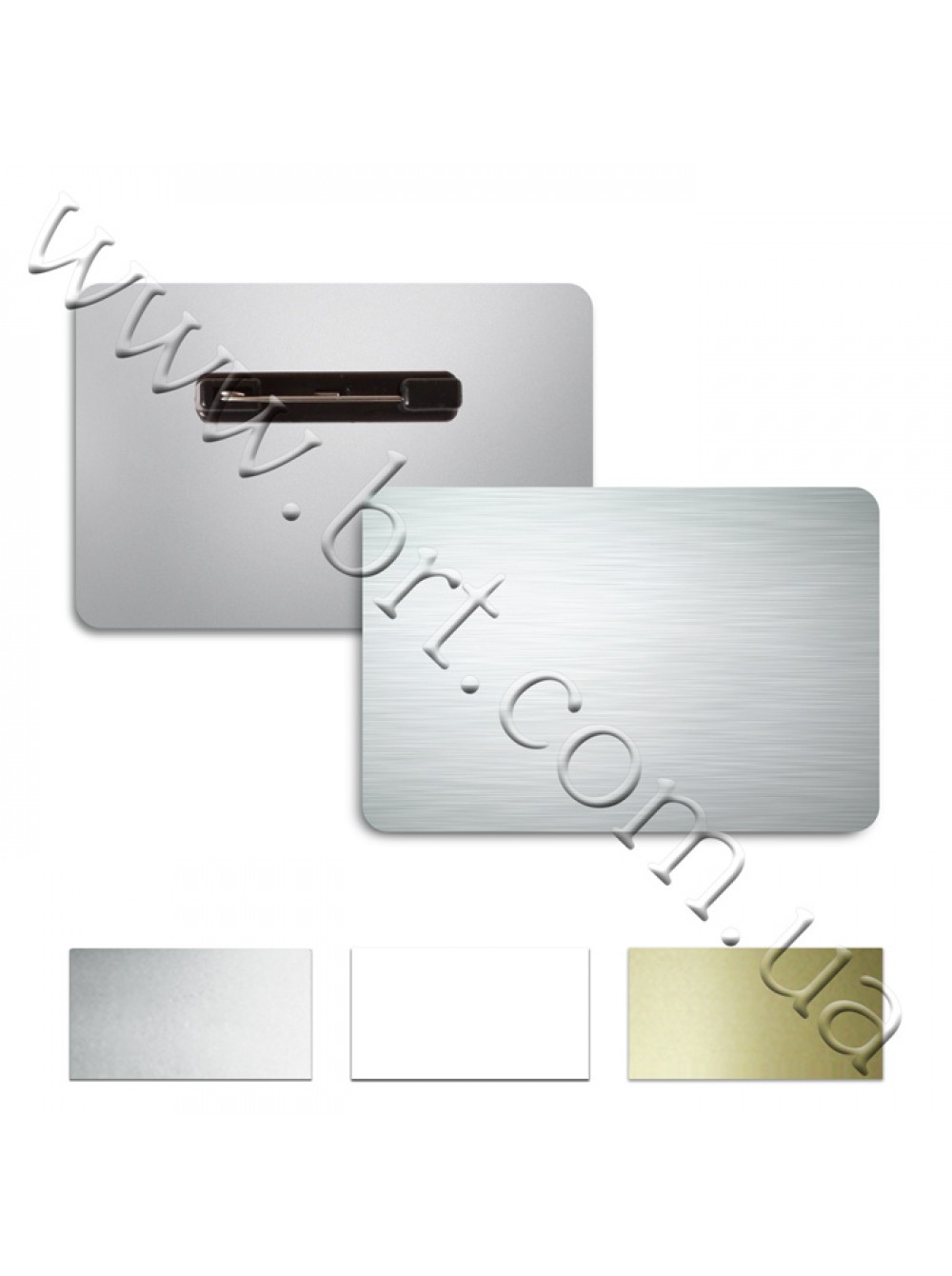 Заготовки бейджи для печати по технологии Гравертон купить у производителя в Украине, Бюро рекламных технологий. Заготовка металлического бейджика любого размера площадью до 28 см.кв. Заготовки бОльшей площади несколько дороже. Стандартными считаются бейджи двух размеров: 60х40 мм или 70х40 мм. На заказ изготовим заготовки любого другого размера с острыми или скругленными углами, но цена будет выше.