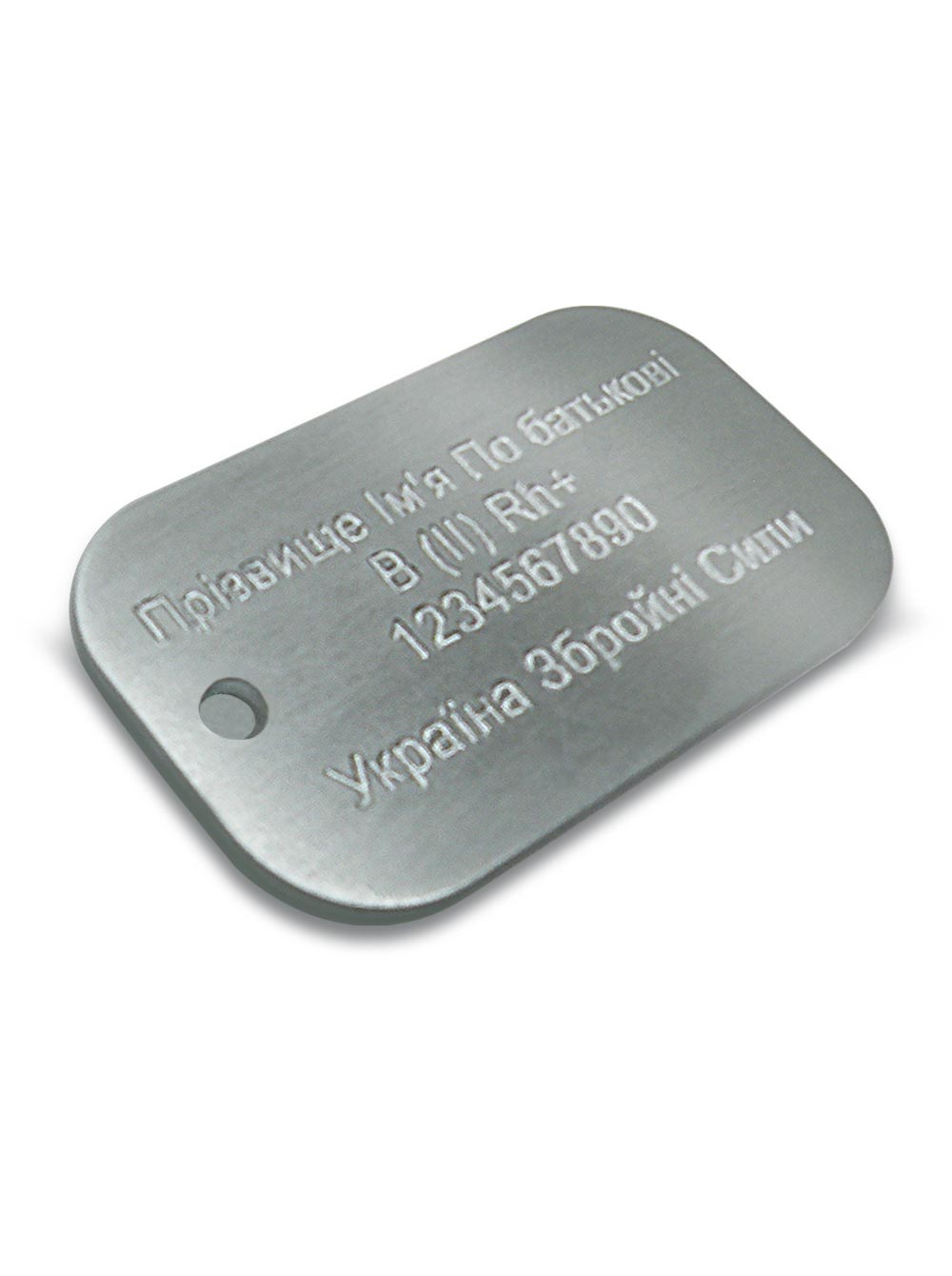 Армейский жетон военного ВСУ, полицейского, СБУ с гравировкой фамилии, группы крови, личного номера военнослужащего и подразделения. Гравировка механическая, глубокая с помощью лазера. Жетон односторонний: вся персональная информация с одной стороны бирки. Заказать оперативное изготовление у производителя – компании "Бюро рекламных технологий".