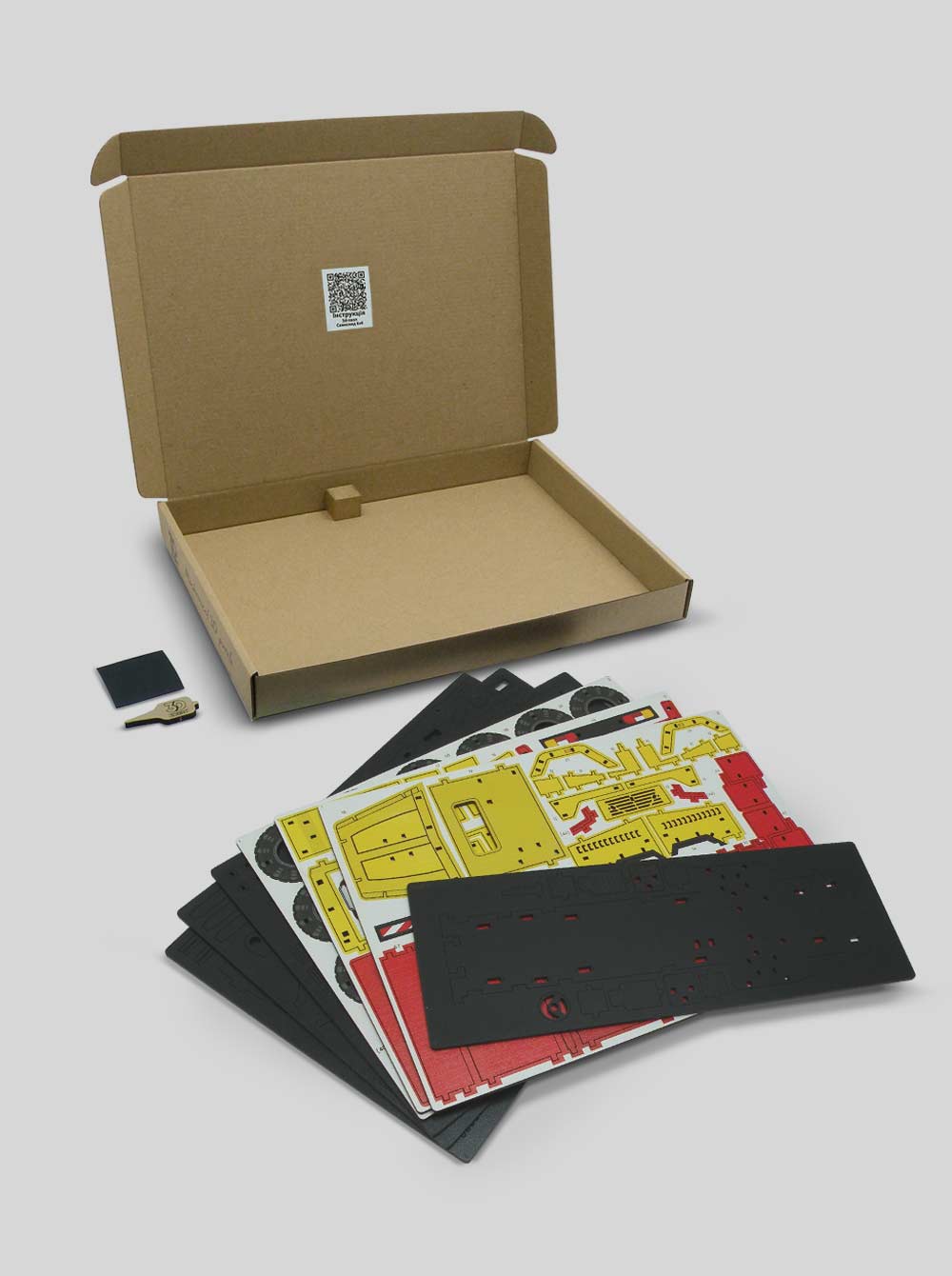 - В коробці разом з конструктором наждачний папір, дерев'яний стилус для вилучення деталей та посилання на електронну інструкцію.
