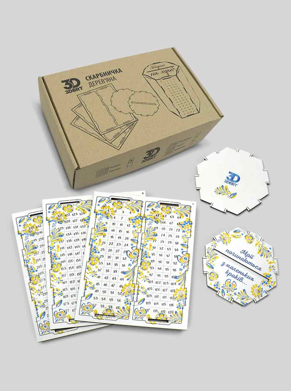 Авторська патріотична дерев'яна скарбничка "Петриківка" на 365 днів від виробника "Бюро рекламних технологій".
