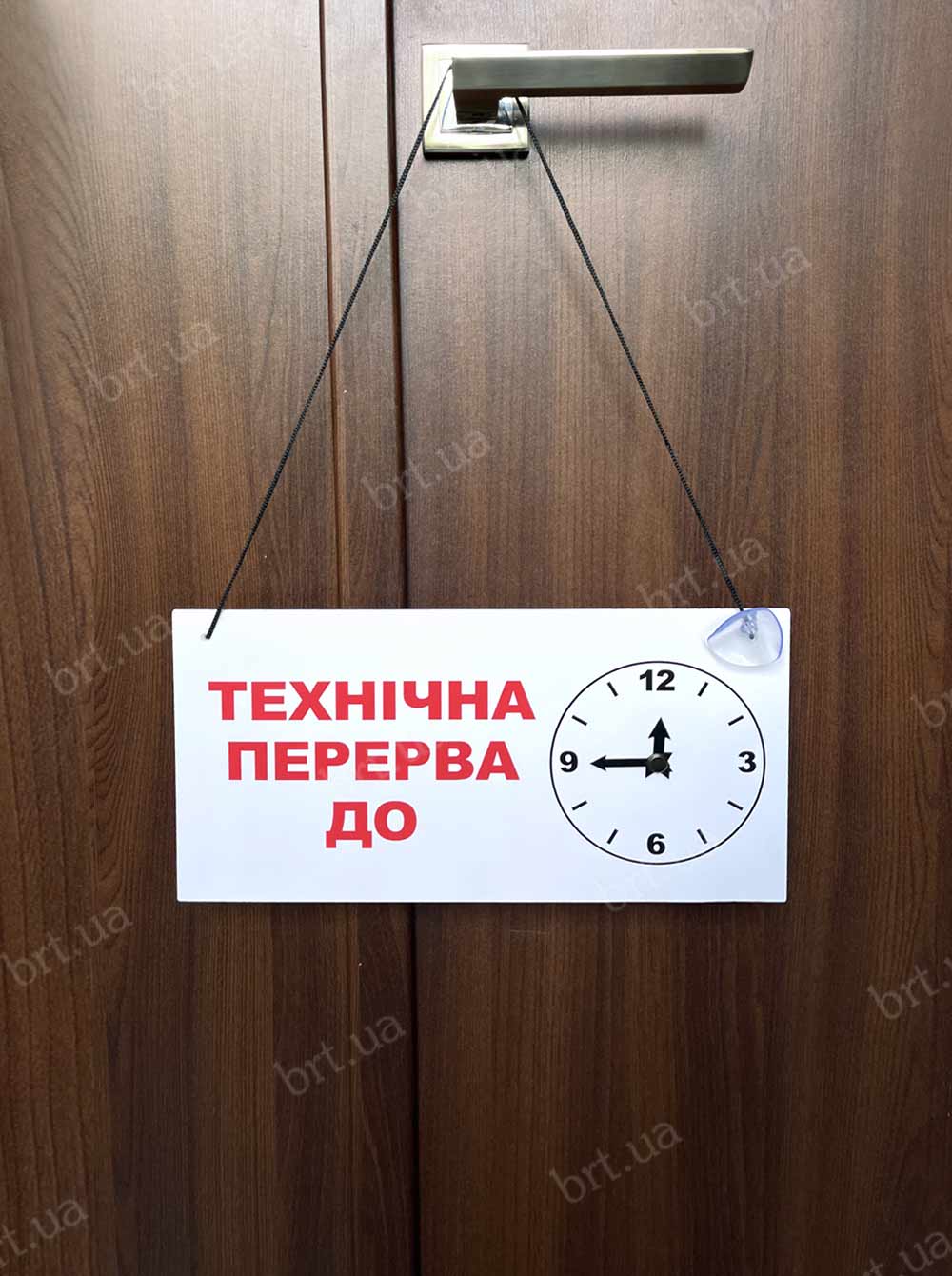 Технічна перерва - табличка з годинником на шнурку і присосу від виробника "Бюро рекламних технологій".